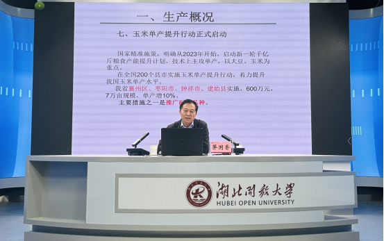 本网讯(通讯员陈霞/文 谭芬/图)11月7日下午,由湖北省农业农村厅主办,我校承办的“2023年湖北省农业主推技术网络专题培训”第四期【玉米宽行窄株增密高产栽培技术】培训班在鲁巷校区开班。省农业科技人才办公室副主任胡继红、省农业技术推广总站副站长、农学博士羿国香参加了开班活动。开班仪式由开放教育学院、培训学院院长肖潇主持。