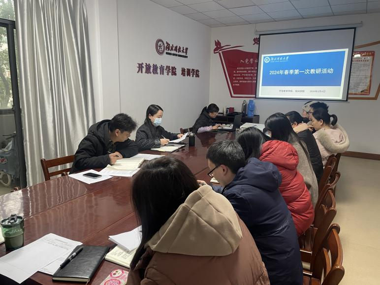 本网讯(通讯员 陈卉/文 方丹、肖娟/图)春回大地,万物复苏,新学期如约而至,为提升教师教学和学习支持服务能力,3月4日,开放教育学院、培训学院开展了春季学期第一次教研活动,学院全体教师参加。