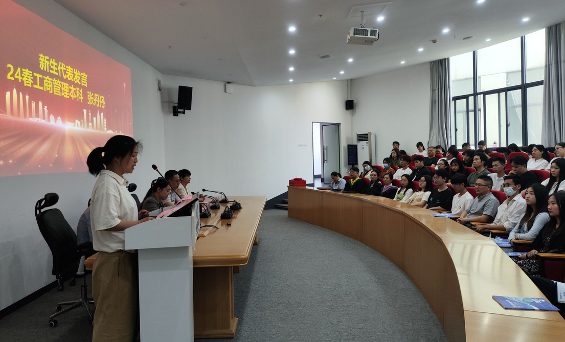 王海洋以“追光的人,终会光芒万丈”为题致辞。他代表学校对2024春季全体新生表示热烈的欢迎,鼓励新生追光而遇、沐光而行、志存高远、脚踏实地,做一个不负时代、不负韶华,迎风向阳的新时代赶路人。肖潇就学院办学历史和办学成绩向新生做了详细的介绍,学院将运用线上线下“三导三促三助”模式,助力学生对知识的运用为目标;对能力的培养为核心;对素质的拓展为根本,为学生打造多元化成长平台。她勉励新生不负春光,主动学习,为自己未来的发展加油充电。