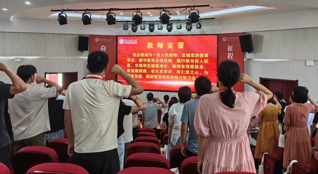开班仪式上,全体学员重温了教师誓言。肖潇代表学校致欢迎辞。她对各位优秀青年教师的到来表示热烈的欢迎,对武汉市教育局、武汉市教师发展与学生服务中心给予的指导和支持表示衷心的感谢。她介绍了学校的办学情况和培训课程的精心策划,讲解了此次培训的重要意义,对于此次培训做好全面服务工作做出保证,希望学员们能够在学习中开阔眼界、增长知识、更新知识、提高素养,能够把培训体悟出的工作新思路、新方法,在今后育人实践中运用起来。