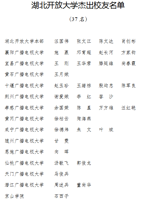 关于公布湖北开放大学2024年杰出校友评选活动结果的通知