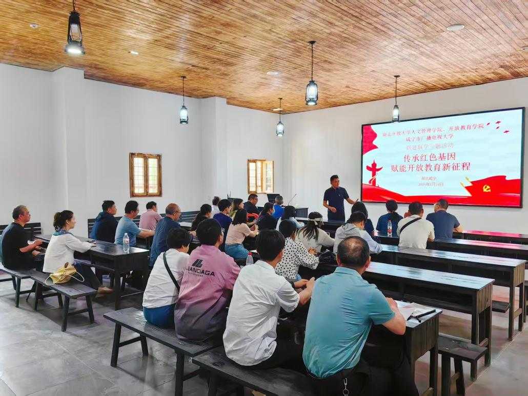 本网讯(通讯员 熊婷 文/图)5月24日,湖北开放大学人文管理学院、开放教育学院党总支与咸宁市广播电视大学开放教育部全体党员在咸宁钱亦石故居联合开展以“传承红色基因 赋能开放教育新征程”为主题的联建联学活动。