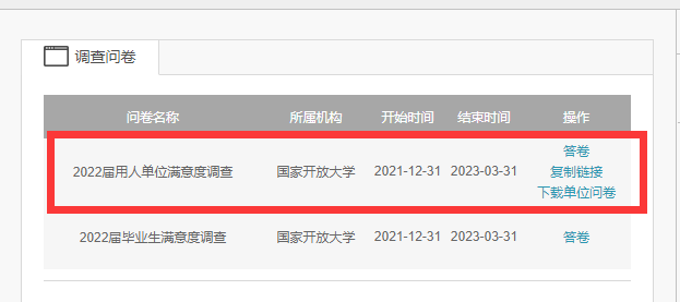 1. 请毕业生自行登录国开学习网(http://student.ouchn.cn)下载、打印《国家开放大学用人单位满意度调查问卷》。