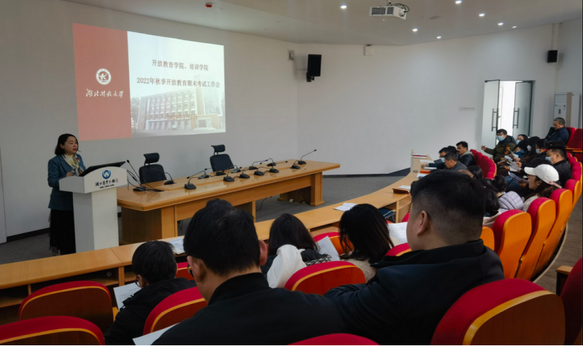 在考试工作会上,张娟副院长传达了国家开放大学2022年秋季学期期末考试考务工作会议精神;刘茂财副院长传达了湖北开放大学系统考试工作会议精神、湖北开放大学系统巡考工作会议精神,肖潇院长对2022年秋季学期开放教育期末考试工作进行全面部署。