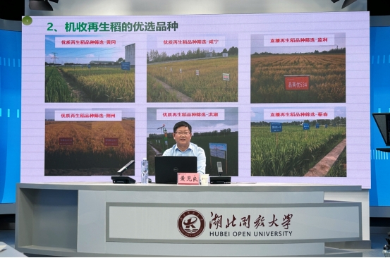 最后,华中农业大学博士生导师、农业农村部水稻组成员、湖北省水稻协会副会长黄见良教授以“再生稻丰产高效栽培技术”为题,就再生稻的优势、优选品种、适时播种、育秧、科学合理施肥、收割时间、重点防治两病等重点关注问题进行了介绍和解答。课程结束后,就参训人员提出的一些问题,进行收集整理,并组织进行训后答疑。