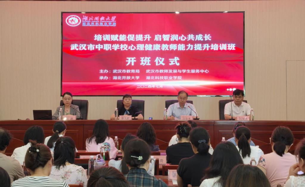 本网讯(通讯员 谭芬 张颢蓝 文/图)7月25日,由武汉市教育局、武汉市教师发展与学生服务中心主办,我校承办的2024年武汉市中职学校心理健康教师能力提升培训在宜昌市顺利开班。校党委常委、副校长汤春来教授出席开班仪式并致辞,来自武汉、宜昌、恩施等地的50名中职学校心理健康教师参加了本次培训。开班仪式邀请了中共五峰县委党校蔡大群副校长出席,由开放教育学院、培训学院院长肖潇主持。